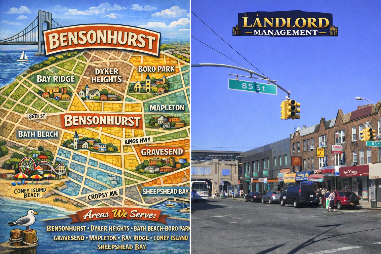 Bensonhurst is one of Brooklyn’s largest and most consistently in-demand residential neighborhoods. With a mix of multifamily homes, walk-up buildings, and long-term tenants, property management here requires structure—organized leasing, reliable rent collection, fast maintenance coordination, and clear tenant communication. Landlord Management provides full-service property management in Bensonhurst and nearby neighborhoods such as Bath Beach Property Management, Dyker Heights Property Management, Gravesend Property Management, and Borough Park Property Management—so owners can reduce daily workload while staying informed and in control.