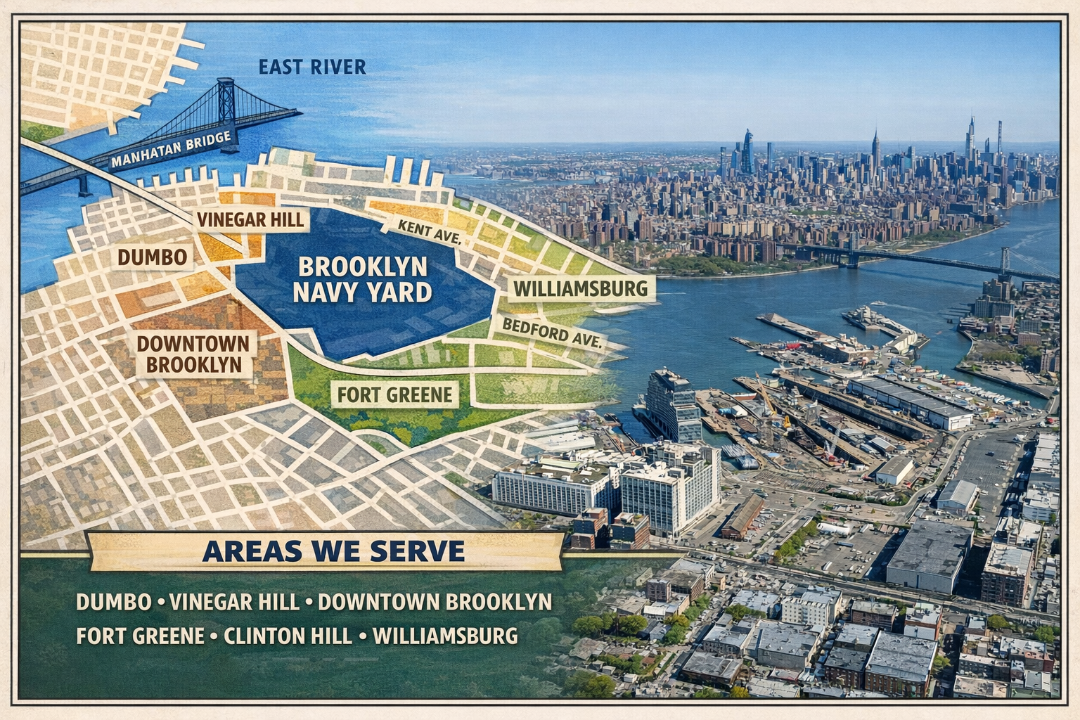We provide Brooklyn Navy Yard property management services near the Brooklyn Navy Yard and surrounding neighborhoods including: Williamsburg Property Management, Greenpoint Property Management, Clinton Hill Property Management, Downtown Brooklyn Property Management, and DUMBO Property Management.