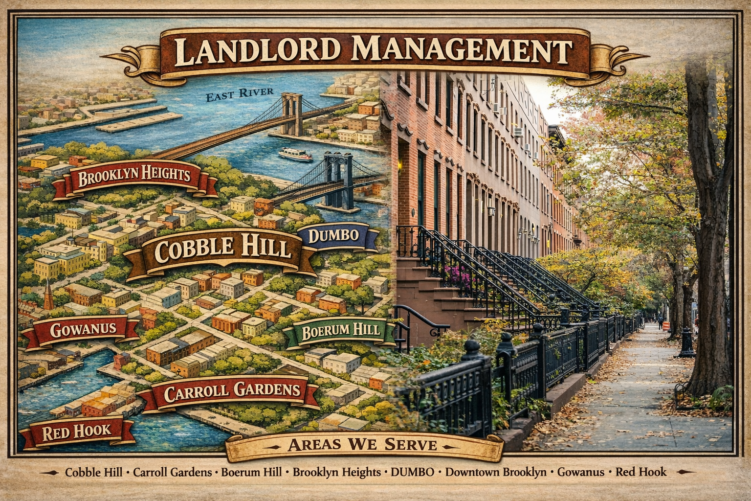 Cobble Hill is one of Brooklyn’s most desirable brownstone neighborhoods, known for quiet residential blocks, strong long-term rental demand, and proximity to Downtown Brooklyn and Manhattan. Property management in Cobble Hill requires a professional, detail-focused approach—consistent rent collection, responsive maintenance coordination, and tenant communication that stays organized and documented. Landlord Management provides full-service property management in Cobble Hill and nearby neighborhoods such as Boerum Hill Property Management, Carroll Gardens Property Management, Brooklyn Heights Property Management, and Downtown Brooklyn Property Management—so owners can reduce daily workload while staying informed and in control.